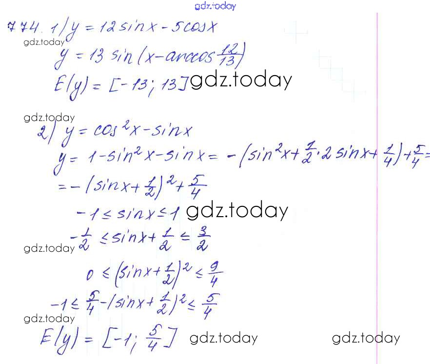 Ответы к Решение к упражнениям 774 Учебнику по Алгебре для 10-11 класса Алимов, Ткачева Базовый и углубленный уровень Просвещение 2015