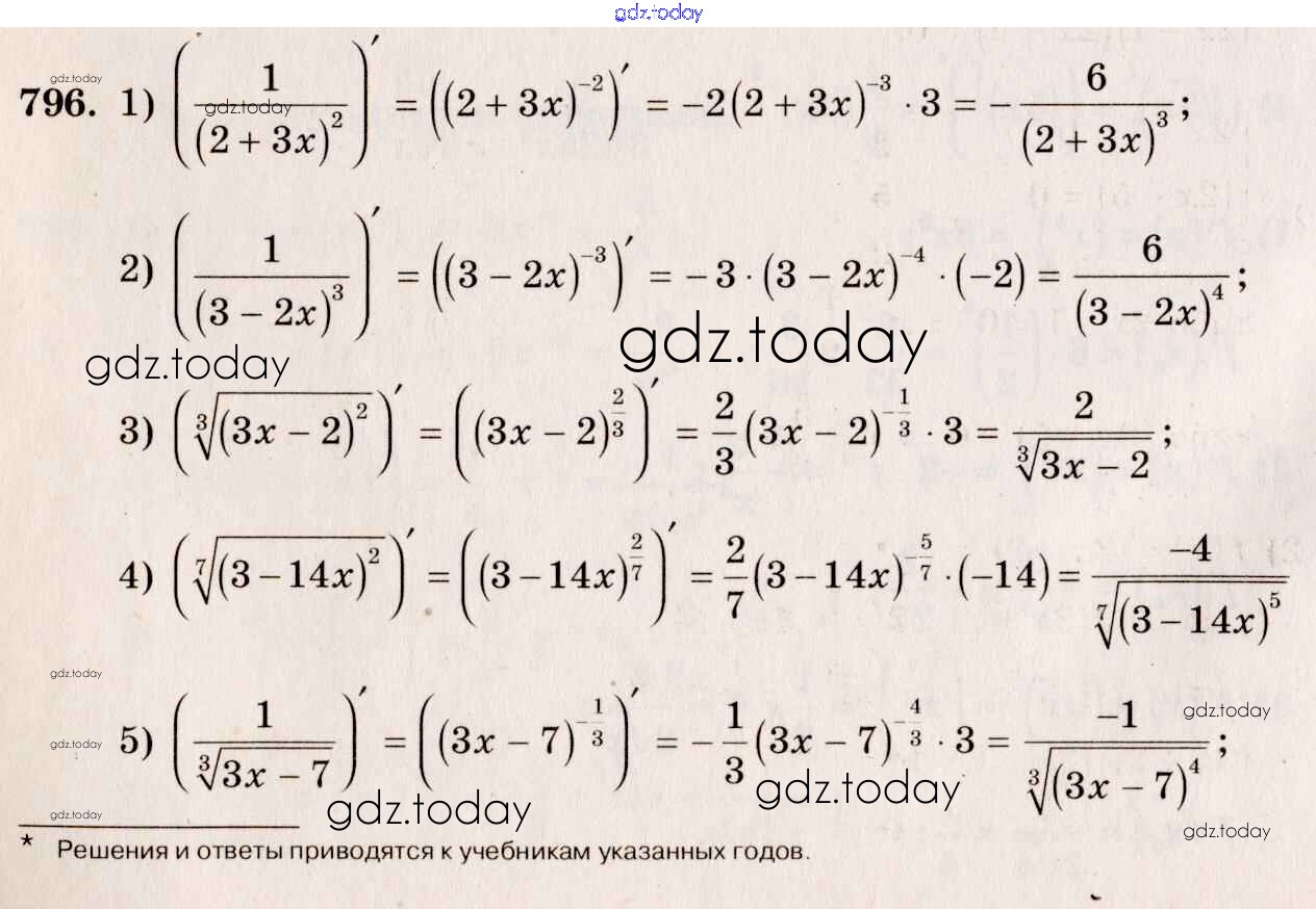 Ответы к Решение к упражнениям 796 Учебнику по Алгебре для 10-11 класса Алимов, Ткачева Базовый и углубленный уровень Просвещение 2015