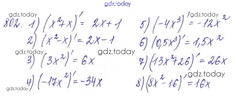 Ответы к Решение к упражнениям 802 Учебнику по Алгебре для 10-11 класса Алимов, Ткачева Базовый и углубленный уровень Просвещение 2015