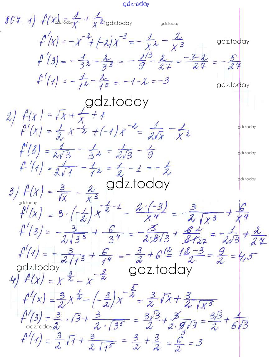 Ответы к Решение к упражнениям 807 Учебнику по Алгебре для 10-11 класса Алимов, Ткачева Базовый и углубленный уровень Просвещение 2015