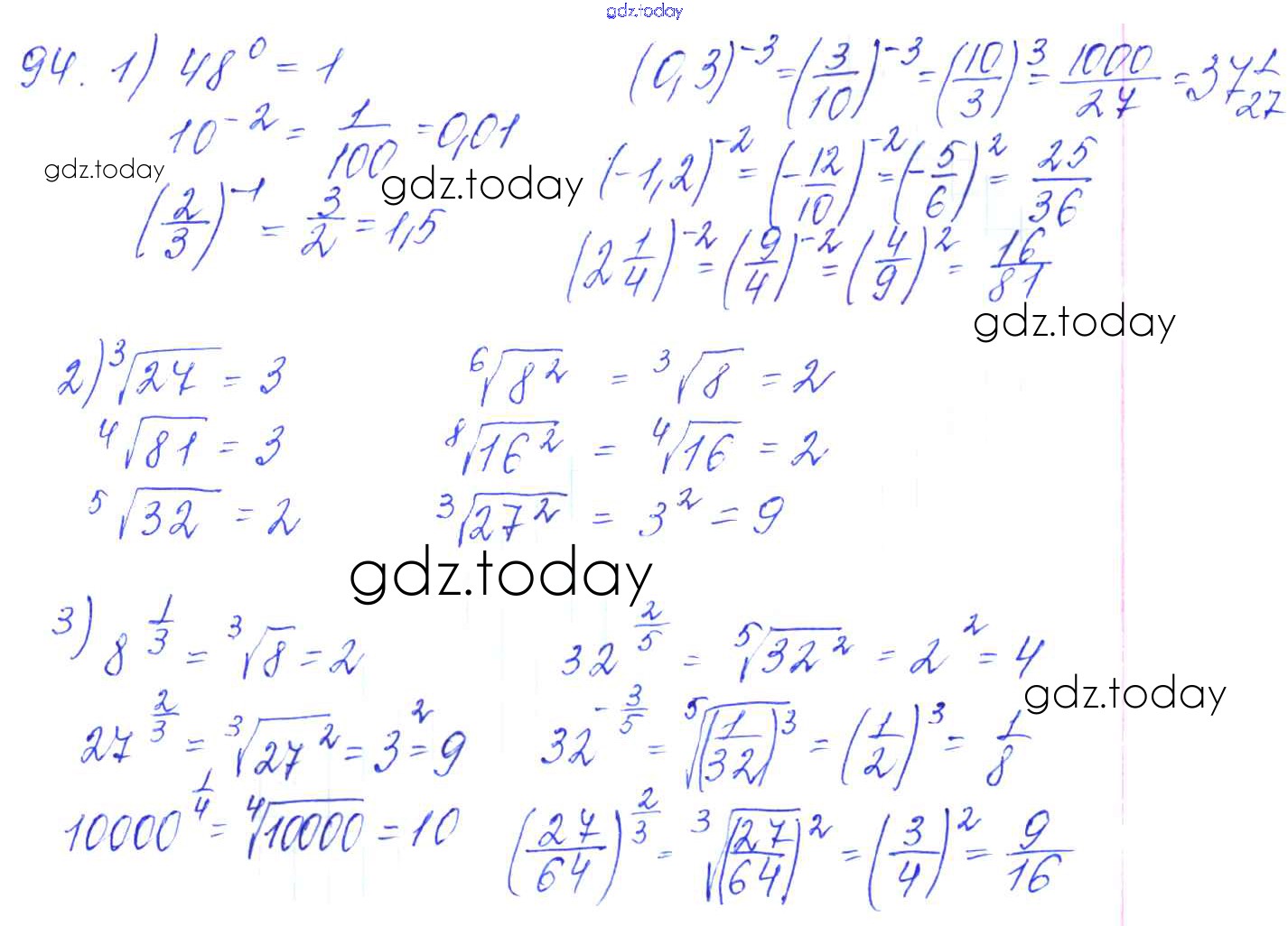 Ответы к Решение к упражнениям 94 Учебнику по Алгебре для 10-11 класса Алимов, Ткачева Базовый и углубленный уровень Просвещение 2015