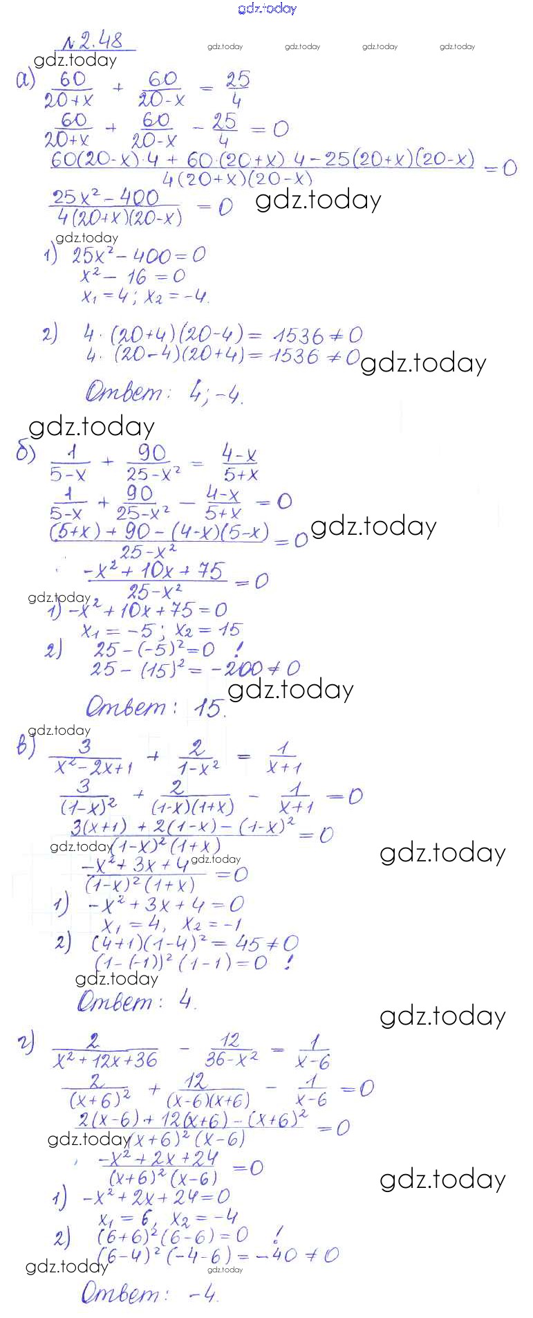 На страницах сайта gdz.today вы найдете учебный и вспомогательный материал, направленный на улучшения знаний школьной программы. ГДЗ - онлайн мир знаний §2. Рациональные уравнения и неравенства Решение к главе 1. Корни, степени, логарифмы 48 Учебнику по Алгебре для 10 класса Никольский, Потапов Базовый и углубленный уровень Просвещение МГУ - школе 2015