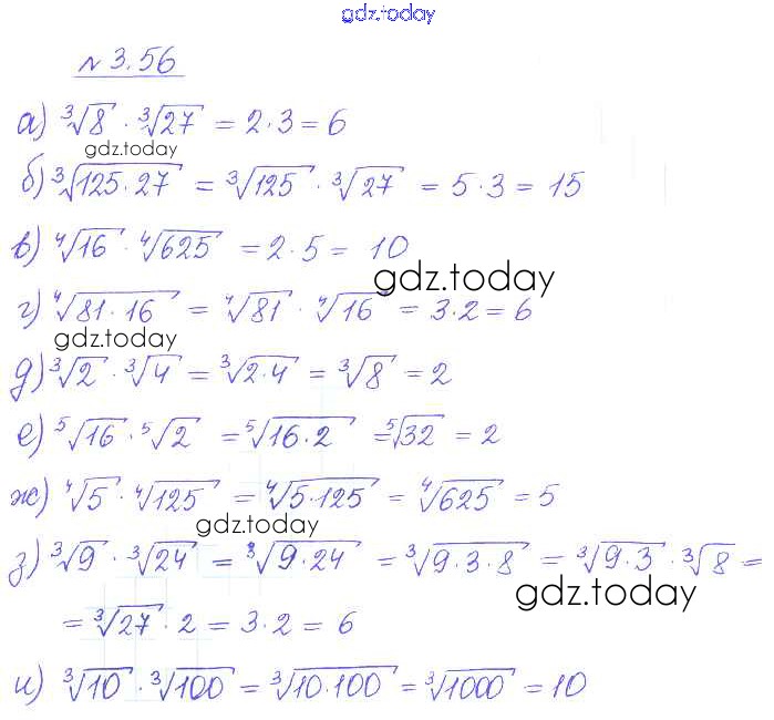 На страницах сайта gdz.today вы найдете учебный и вспомогательный материал, направленный на улучшения знаний школьной программы. ГДЗ - онлайн мир знаний §3. Корень степени n Решение к главе 1. Корни, степени, логарифмы 56 Учебнику по Алгебре для 10 класса Никольский, Потапов Базовый и углубленный уровень Просвещение МГУ - школе 2015