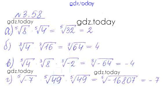 На страницах сайта gdz.today вы найдете учебный и вспомогательный материал, направленный на улучшения знаний школьной программы. ГДЗ - онлайн мир знаний §3. Корень степени n Решение к главе 1. Корни, степени, логарифмы 58 Учебнику по Алгебре для 10 класса Никольский, Потапов Базовый и углубленный уровень Просвещение МГУ - школе 2015