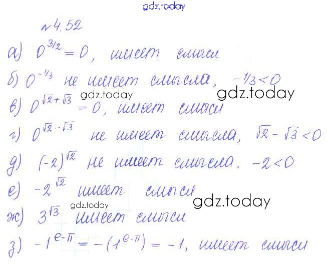 На страницах сайта gdz.today вы найдете учебный и вспомогательный материал, направленный на улучшения знаний школьной программы. ГДЗ - онлайн мир знаний §4. Степень положительного числа Решение к главе 1. Корни, степени, логарифмы 52 Учебнику по Алгебре для 10 класса Никольский, Потапов Базовый и углубленный уровень Просвещение МГУ - школе 2015