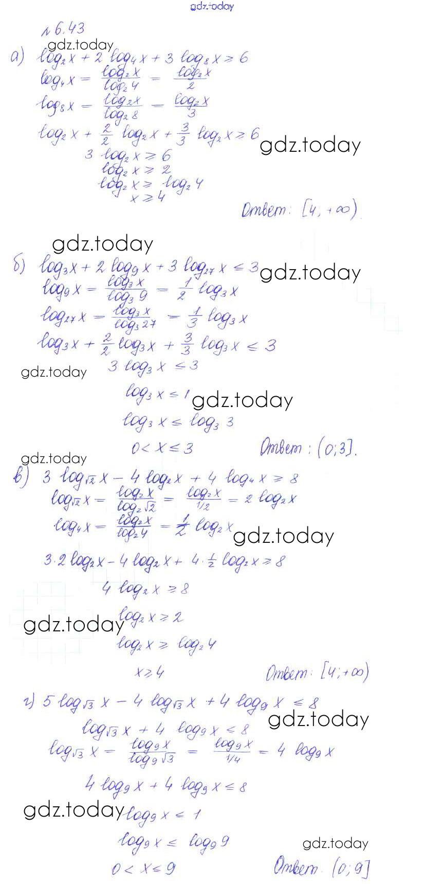 На страницах сайта gdz.today вы найдете учебный и вспомогательный материал, направленный на улучшения знаний школьной программы. ГДЗ - онлайн мир знаний §6. Показательные и логарифмические уравнения и неравенства Решение к главе 1. Корни, степени, логарифмы 43 Учебнику по Алгебре для 10 класса Никольский, Потапов Базовый и углубленный уровень Просвещение МГУ - школе 2015
