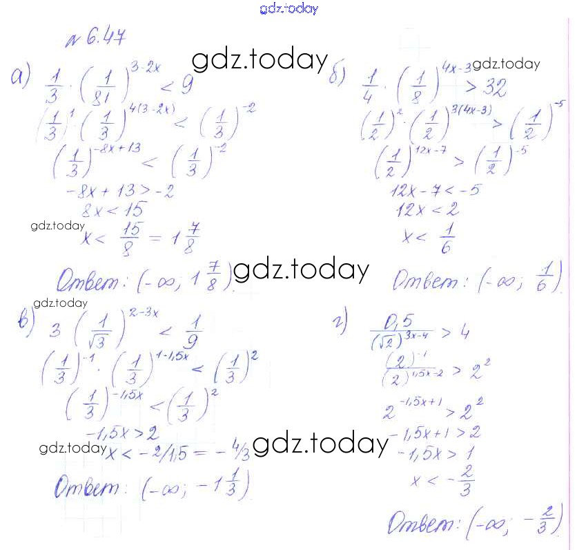 На страницах сайта gdz.today вы найдете учебный и вспомогательный материал, направленный на улучшения знаний школьной программы. ГДЗ - онлайн мир знаний §6. Показательные и логарифмические уравнения и неравенства Решение к главе 1. Корни, степени, логарифмы 47 Учебнику по Алгебре для 10 класса Никольский, Потапов Базовый и углубленный уровень Просвещение МГУ - школе 2015