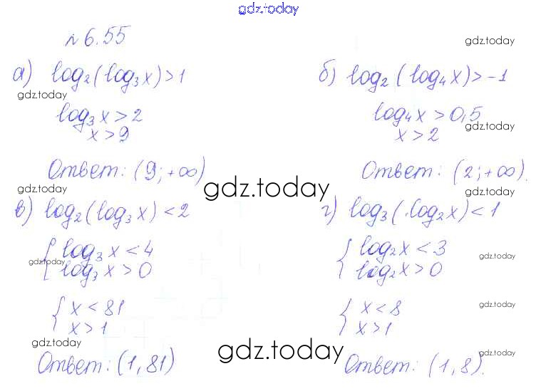 На страницах сайта gdz.today вы найдете учебный и вспомогательный материал, направленный на улучшения знаний школьной программы. ГДЗ - онлайн мир знаний §6. Показательные и логарифмические уравнения и неравенства Решение к главе 1. Корни, степени, логарифмы 55 Учебнику по Алгебре для 10 класса Никольский, Потапов Базовый и углубленный уровень Просвещение МГУ - школе 2015
