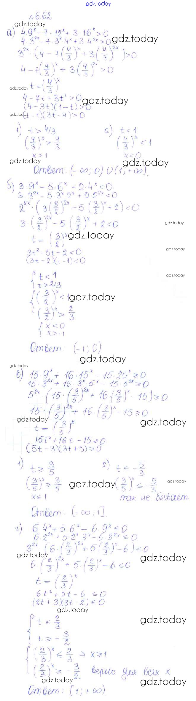 На страницах сайта gdz.today вы найдете учебный и вспомогательный материал, направленный на улучшения знаний школьной программы. ГДЗ - онлайн мир знаний §6. Показательные и логарифмические уравнения и неравенства Решение к главе 1. Корни, степени, логарифмы 62 Учебнику по Алгебре для 10 класса Никольский, Потапов Базовый и углубленный уровень Просвещение МГУ - школе 2015