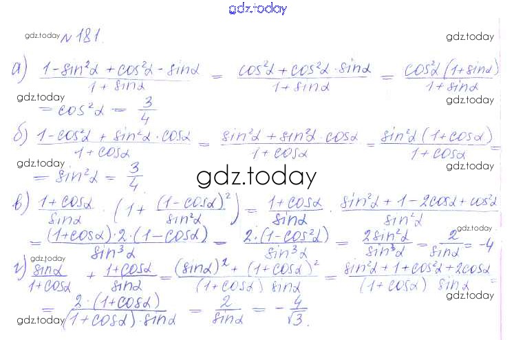Ответы к Решение к заданиям для повторения 181 Учебнику по Алгебре для 10 класса Никольский, Потапов Базовый и углубленный уровень Просвещение МГУ - школе 2015