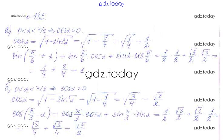 Ответы к Решение к заданиям для повторения 185 Учебнику по Алгебре для 10 класса Никольский, Потапов Базовый и углубленный уровень Просвещение МГУ - школе 2015