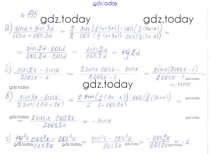 Ответы к Решение к заданиям для повторения 195 Учебнику по Алгебре для 10 класса Никольский, Потапов Базовый и углубленный уровень Просвещение МГУ - школе 2015
