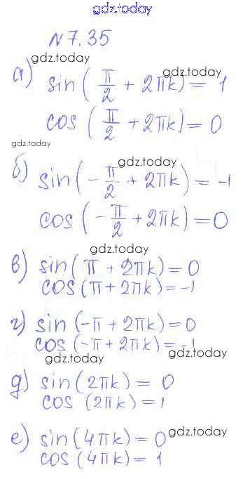 На страницах сайта gdz.today вы найдете учебный и вспомогательный материал, направленный на улучшения знаний школьной программы. ГДЗ - онлайн мир знаний §7. Синус и косинус угла Решение к главе 2. Тригонометрические формулы. Тригонометрические функции 35 Учебнику по Алгебре для 10 класса Никольский, Потапов Базовый и углубленный уровень Просвещение МГУ - школе 2015