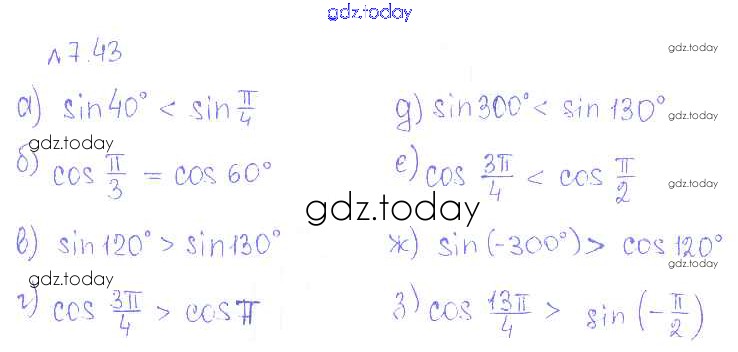 На страницах сайта gdz.today вы найдете учебный и вспомогательный материал, направленный на улучшения знаний школьной программы. ГДЗ - онлайн мир знаний §7. Синус и косинус угла Решение к главе 2. Тригонометрические формулы. Тригонометрические функции 43 Учебнику по Алгебре для 10 класса Никольский, Потапов Базовый и углубленный уровень Просвещение МГУ - школе 2015