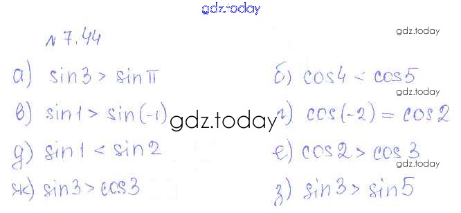 На страницах сайта gdz.today вы найдете учебный и вспомогательный материал, направленный на улучшения знаний школьной программы. ГДЗ - онлайн мир знаний §7. Синус и косинус угла Решение к главе 2. Тригонометрические формулы. Тригонометрические функции 44 Учебнику по Алгебре для 10 класса Никольский, Потапов Базовый и углубленный уровень Просвещение МГУ - школе 2015
