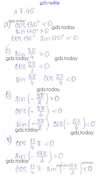 На страницах сайта gdz.today вы найдете учебный и вспомогательный материал, направленный на улучшения знаний школьной программы. ГДЗ - онлайн мир знаний §7. Синус и косинус угла Решение к главе 2. Тригонометрические формулы. Тригонометрические функции 45 Учебнику по Алгебре для 10 класса Никольский, Потапов Базовый и углубленный уровень Просвещение МГУ - школе 2015
