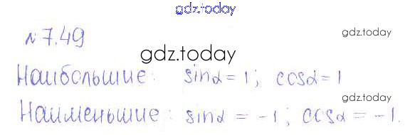 На страницах сайта gdz.today вы найдете учебный и вспомогательный материал, направленный на улучшения знаний школьной программы. ГДЗ - онлайн мир знаний §7. Синус и косинус угла Решение к главе 2. Тригонометрические формулы. Тригонометрические функции 49 Учебнику по Алгебре для 10 класса Никольский, Потапов Базовый и углубленный уровень Просвещение МГУ - школе 2015