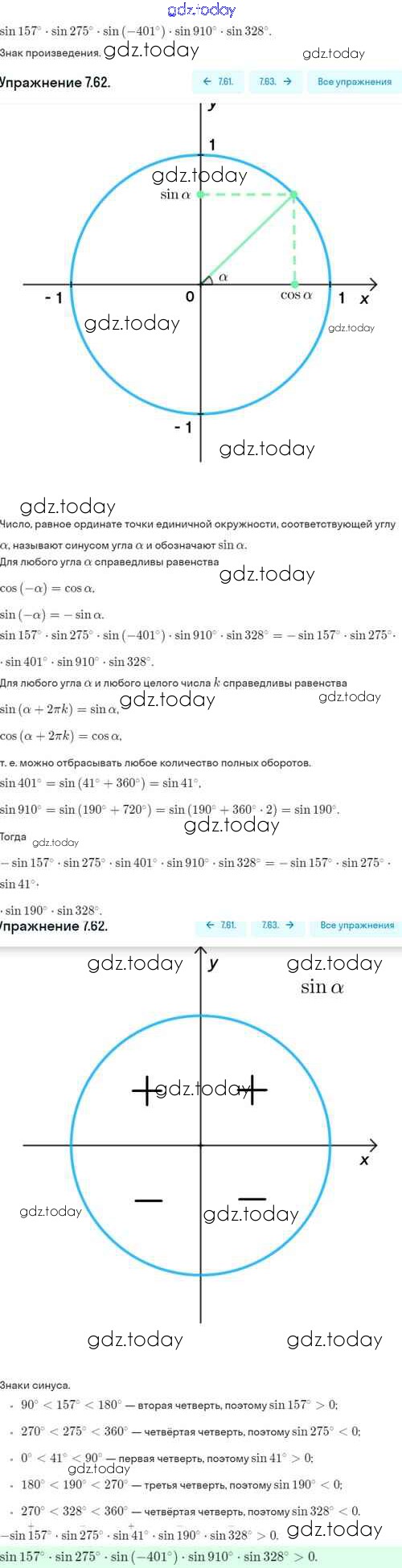 На страницах сайта gdz.today вы найдете учебный и вспомогательный материал, направленный на улучшения знаний школьной программы. ГДЗ - онлайн мир знаний §7. Синус и косинус угла Решение. Глава 2. Тригонометрические формулы. Тригонометрические функции 7.62 Учебнику по Алгебре для 10 класса Никольский, Потапов Базовый и углубленный уровень Просвещение МГУ - школе 2015