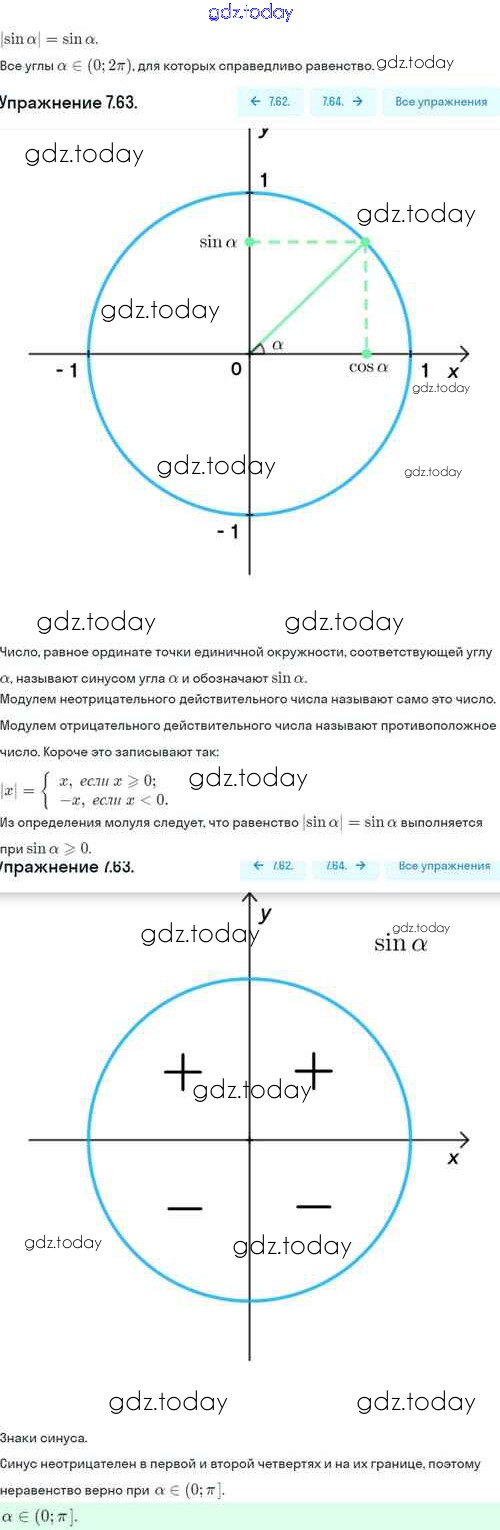 На страницах сайта gdz.today вы найдете учебный и вспомогательный материал, направленный на улучшения знаний школьной программы. ГДЗ - онлайн мир знаний §7. Синус и косинус угла Решение. Глава 2. Тригонометрические формулы. Тригонометрические функции 7.63 Учебнику по Алгебре для 10 класса Никольский, Потапов Базовый и углубленный уровень Просвещение МГУ - школе 2015