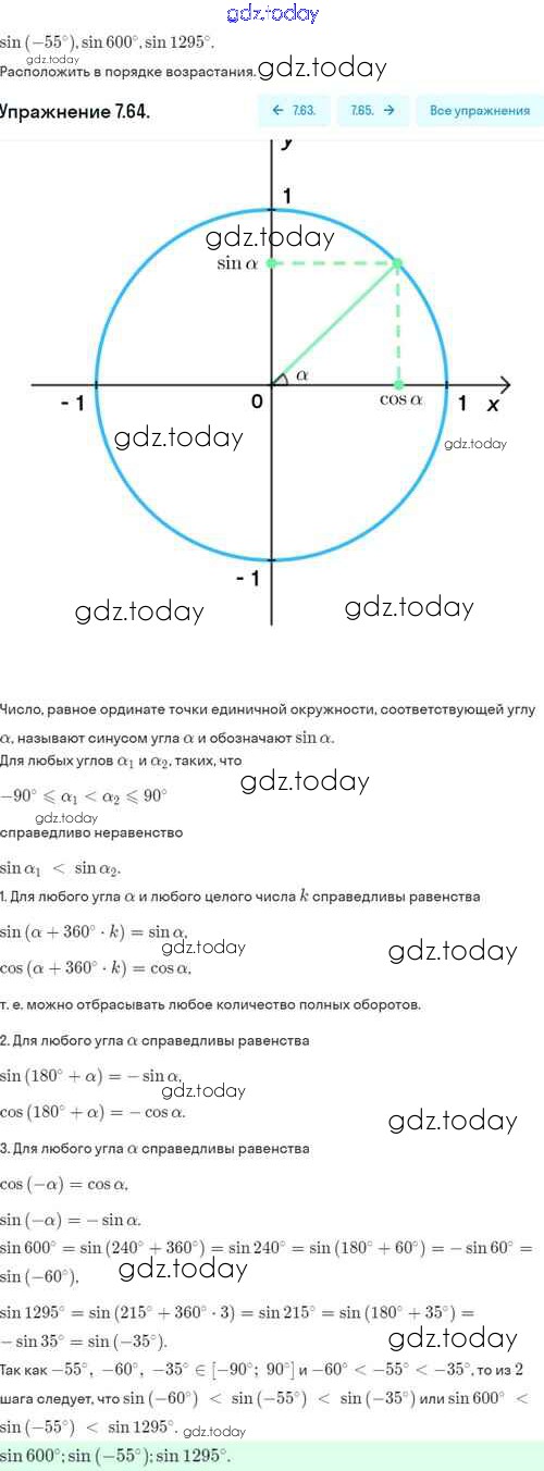 На страницах сайта gdz.today вы найдете учебный и вспомогательный материал, направленный на улучшения знаний школьной программы. ГДЗ - онлайн мир знаний §7. Синус и косинус угла Решение. Глава 2. Тригонометрические формулы. Тригонометрические функции 7.64 Учебнику по Алгебре для 10 класса Никольский, Потапов Базовый и углубленный уровень Просвещение МГУ - школе 2015
