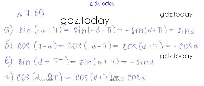 На страницах сайта gdz.today вы найдете учебный и вспомогательный материал, направленный на улучшения знаний школьной программы. ГДЗ - онлайн мир знаний §7. Синус и косинус угла Решение к главе 2. Тригонометрические формулы. Тригонометрические функции 69 Учебнику по Алгебре для 10 класса Никольский, Потапов Базовый и углубленный уровень Просвещение МГУ - школе 2015