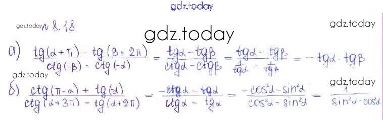 Ответы к §8. Тангес и катангес угла Решение к главе 2. Тригонометрические формулы. Тригонометрические функции 18 Учебнику по Алгебре для 10 класса Никольский, Потапов Базовый и углубленный уровень Просвещение МГУ - школе 2015