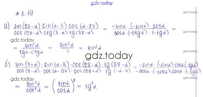 Ответы к §8. Тангес и катангес угла Решение к главе 2. Тригонометрические формулы. Тригонометрические функции 19 Учебнику по Алгебре для 10 класса Никольский, Потапов Базовый и углубленный уровень Просвещение МГУ - школе 2015
