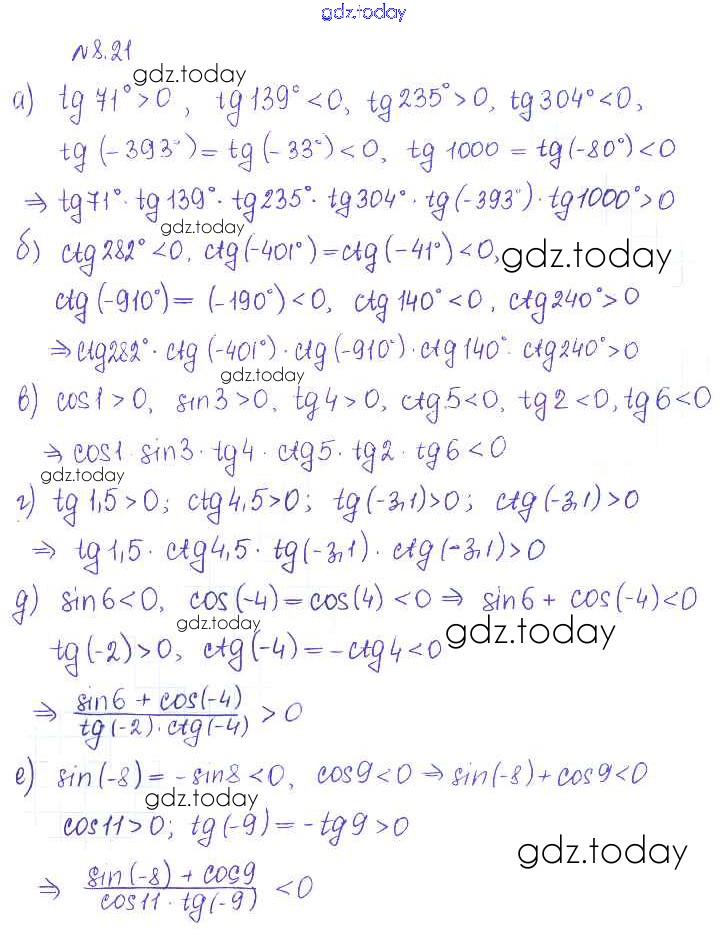 Ответы к §8. Тангес и катангес угла Решение к главе 2. Тригонометрические формулы. Тригонометрические функции 21 Учебнику по Алгебре для 10 класса Никольский, Потапов Базовый и углубленный уровень Просвещение МГУ - школе 2015