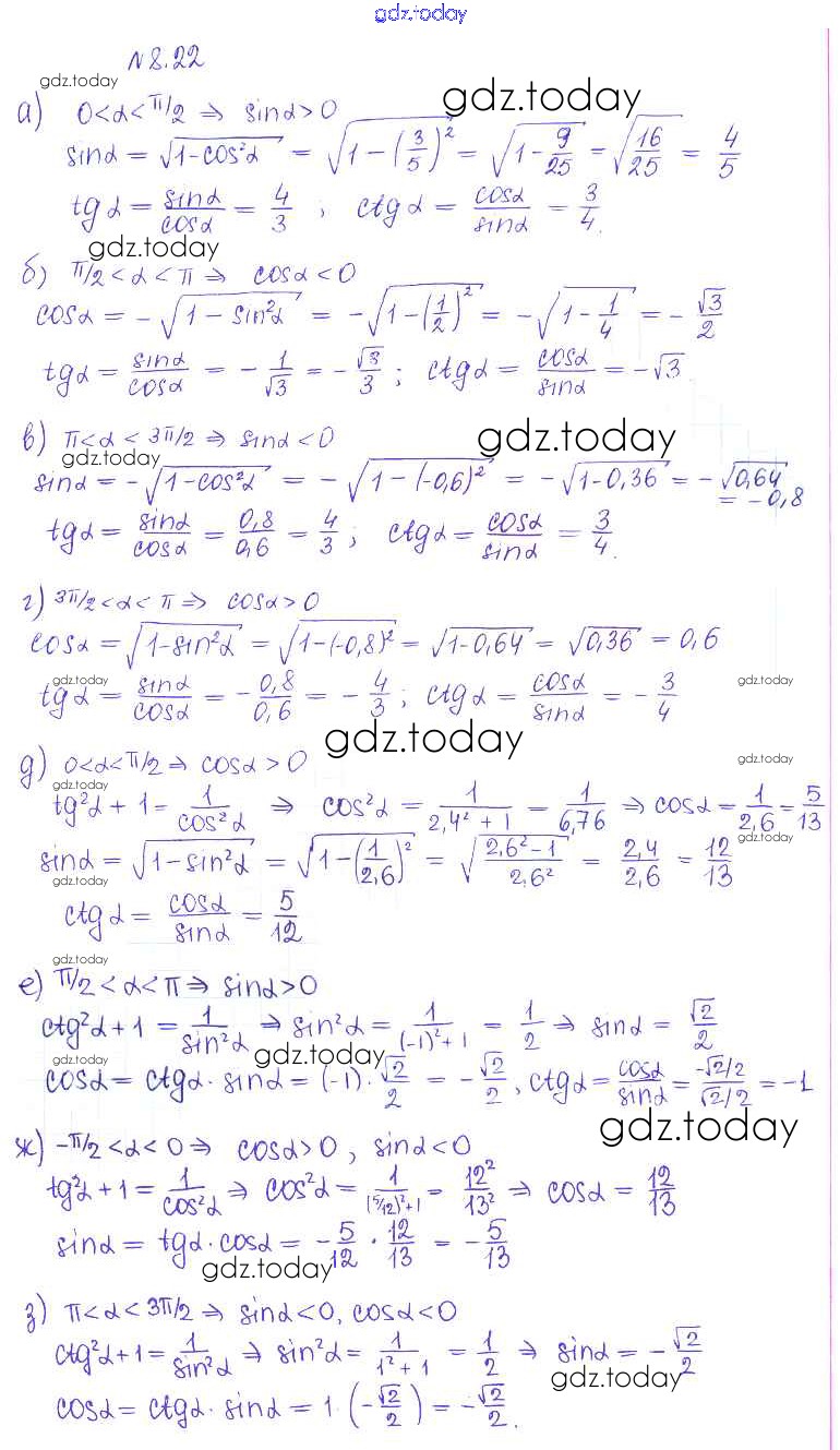 Ответы к §8. Тангес и катангес угла Решение к главе 2. Тригонометрические формулы. Тригонометрические функции 22 Учебнику по Алгебре для 10 класса Никольский, Потапов Базовый и углубленный уровень Просвещение МГУ - школе 2015