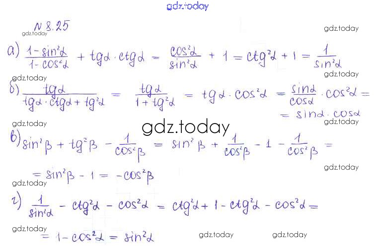 Ответы к §8. Тангес и катангес угла Решение к главе 2. Тригонометрические формулы. Тригонометрические функции 25 Учебнику по Алгебре для 10 класса Никольский, Потапов Базовый и углубленный уровень Просвещение МГУ - школе 2015