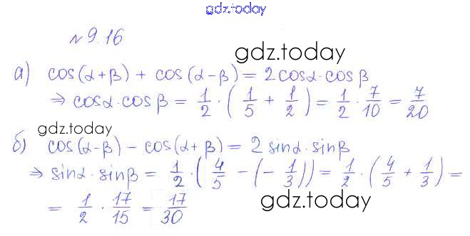 На страницах сайта gdz.today вы найдете учебный и вспомогательный материал, направленный на улучшения знаний школьной программы. ГДЗ - онлайн мир знаний §9. Формулы сложения Решение к главе 2. Тригонометрические формулы. Тригонометрические функции 16 Учебнику по Алгебре для 10 класса Никольский, Потапов Базовый и углубленный уровень Просвещение МГУ - школе 2015