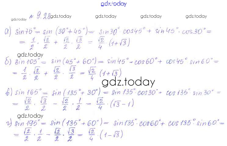 На страницах сайта gdz.today вы найдете учебный и вспомогательный материал, направленный на улучшения знаний школьной программы. ГДЗ - онлайн мир знаний §9. Формулы сложения Решение к главе 2. Тригонометрические формулы. Тригонометрические функции 28 Учебнику по Алгебре для 10 класса Никольский, Потапов Базовый и углубленный уровень Просвещение МГУ - школе 2015