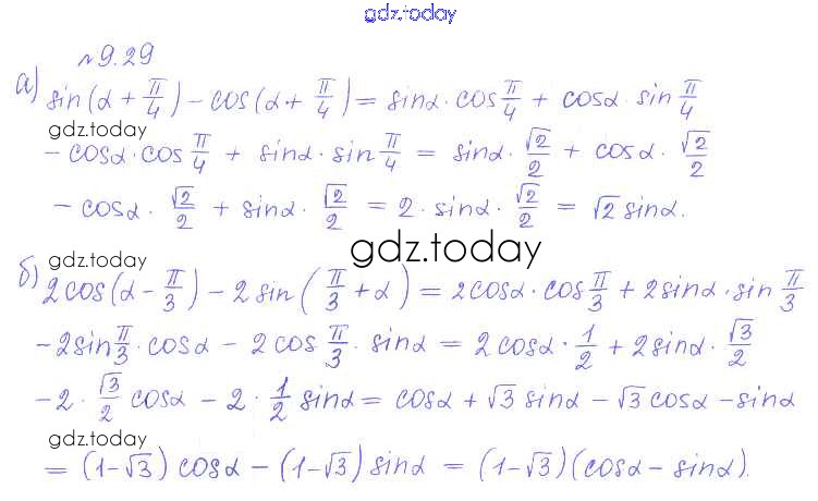 На страницах сайта gdz.today вы найдете учебный и вспомогательный материал, направленный на улучшения знаний школьной программы. ГДЗ - онлайн мир знаний §9. Формулы сложения Решение к главе 2. Тригонометрические формулы. Тригонометрические функции 29 Учебнику по Алгебре для 10 класса Никольский, Потапов Базовый и углубленный уровень Просвещение МГУ - школе 2015