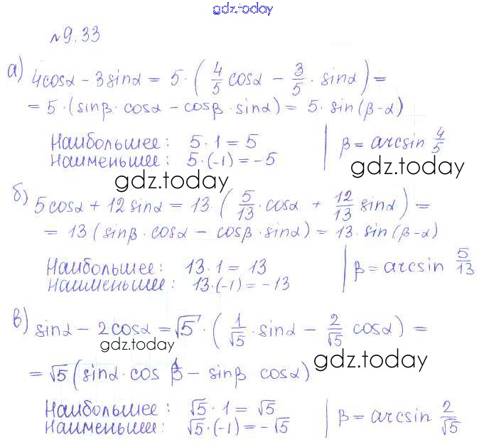На страницах сайта gdz.today вы найдете учебный и вспомогательный материал, направленный на улучшения знаний школьной программы. ГДЗ - онлайн мир знаний §9. Формулы сложения Решение к главе 2. Тригонометрические формулы. Тригонометрические функции 33 Учебнику по Алгебре для 10 класса Никольский, Потапов Базовый и углубленный уровень Просвещение МГУ - школе 2015