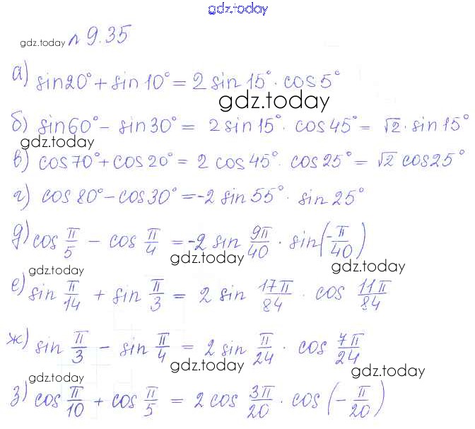 На страницах сайта gdz.today вы найдете учебный и вспомогательный материал, направленный на улучшения знаний школьной программы. ГДЗ - онлайн мир знаний §9. Формулы сложения Решение к главе 2. Тригонометрические формулы. Тригонометрические функции 35 Учебнику по Алгебре для 10 класса Никольский, Потапов Базовый и углубленный уровень Просвещение МГУ - школе 2015