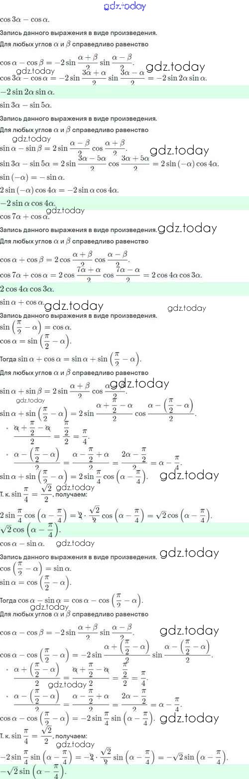 На страницах сайта gdz.today вы найдете учебный и вспомогательный материал, направленный на улучшения знаний школьной программы. ГДЗ - онлайн мир знаний §9. Формулы сложения Решение. Глава 2. Тригонометрические формулы. Тригонометрические функции 9.36 Учебнику по Алгебре для 10 класса Никольский, Потапов Базовый и углубленный уровень Просвещение МГУ - школе 2015