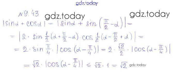 На страницах сайта gdz.today вы найдете учебный и вспомогательный материал, направленный на улучшения знаний школьной программы. ГДЗ - онлайн мир знаний §9. Формулы сложения Решение к главе 2. Тригонометрические формулы. Тригонометрические функции 43 Учебнику по Алгебре для 10 класса Никольский, Потапов Базовый и углубленный уровень Просвещение МГУ - школе 2015
