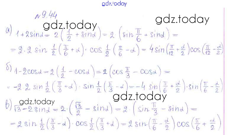 На страницах сайта gdz.today вы найдете учебный и вспомогательный материал, направленный на улучшения знаний школьной программы. ГДЗ - онлайн мир знаний §9. Формулы сложения Решение к главе 2. Тригонометрические формулы. Тригонометрические функции 44 Учебнику по Алгебре для 10 класса Никольский, Потапов Базовый и углубленный уровень Просвещение МГУ - школе 2015
