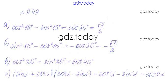 На страницах сайта gdz.today вы найдете учебный и вспомогательный материал, направленный на улучшения знаний школьной программы. ГДЗ - онлайн мир знаний §9. Формулы сложения Решение к главе 2. Тригонометрические формулы. Тригонометрические функции 49 Учебнику по Алгебре для 10 класса Никольский, Потапов Базовый и углубленный уровень Просвещение МГУ - школе 2015