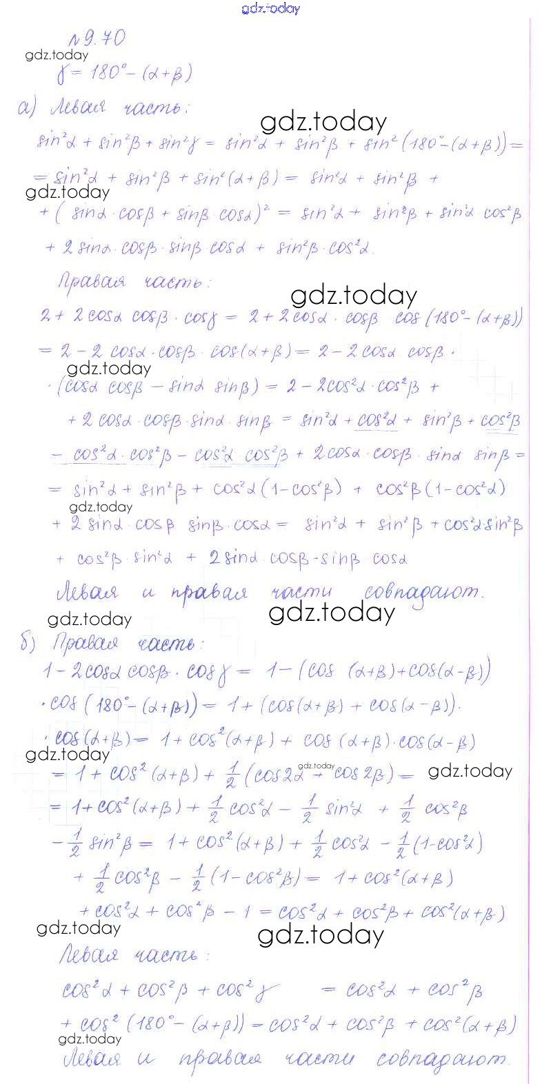 На страницах сайта gdz.today вы найдете учебный и вспомогательный материал, направленный на улучшения знаний школьной программы. ГДЗ - онлайн мир знаний §9. Формулы сложения Решение к главе 2. Тригонометрические формулы. Тригонометрические функции 70 Учебнику по Алгебре для 10 класса Никольский, Потапов Базовый и углубленный уровень Просвещение МГУ - школе 2015