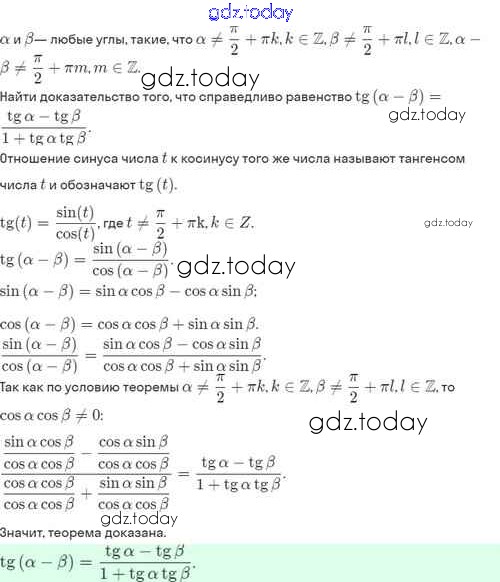 Ответы к §9. Формулы сложения Решение. Глава 2. Тригонометрические формулы. Тригонометрические функции 9.72 Учебнику по Алгебре для 10 класса Никольский, Потапов Базовый и углубленный уровень Просвещение МГУ - школе 2015