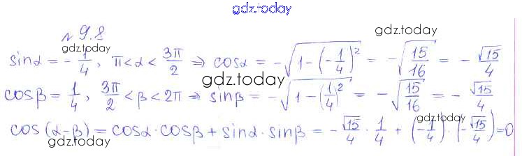 Ответы к §9. Формулы сложения Решение к главе 2. Тригонометрические формулы. Тригонометрические функции 8 Учебнику по Алгебре для 10 класса Никольский, Потапов Базовый и углубленный уровень Просвещение МГУ - школе 2015