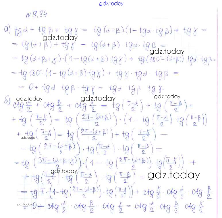 Ответы к §9. Формулы сложения Решение к главе 2. Тригонометрические формулы. Тригонометрические функции 84 Учебнику по Алгебре для 10 класса Никольский, Потапов Базовый и углубленный уровень Просвещение МГУ - школе 2015