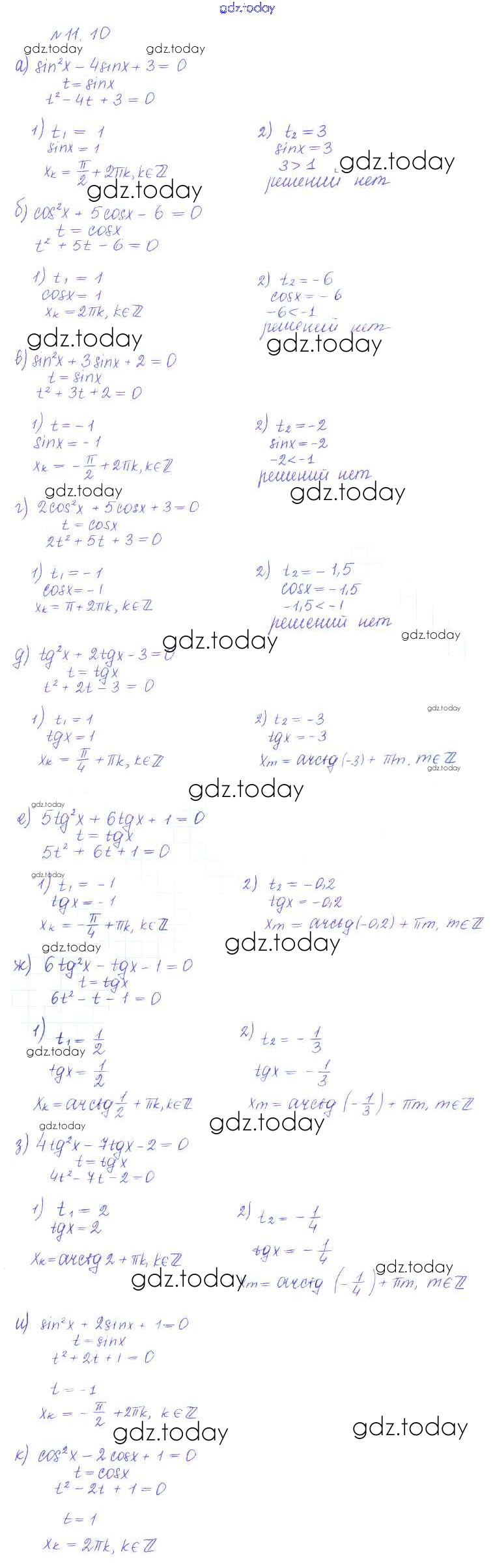 На страницах сайта gdz.today вы найдете учебный и вспомогательный материал, направленный на улучшения знаний школьной программы. ГДЗ - онлайн мир знаний §11. Тригонометрические уравнения и неравенства Решение к главе 2. Тригонометрические формулы. Тригонометрические функции 10 Учебнику по Алгебре для 10 класса Никольский, Потапов Базовый и углубленный уровень Просвещение МГУ - школе 2015