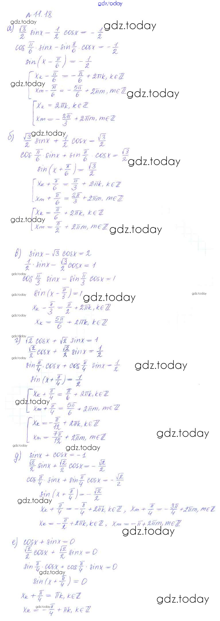 На страницах сайта gdz.today вы найдете учебный и вспомогательный материал, направленный на улучшения знаний школьной программы. ГДЗ - онлайн мир знаний §11. Тригонометрические уравнения и неравенства Решение к главе 2. Тригонометрические формулы. Тригонометрические функции 18 Учебнику по Алгебре для 10 класса Никольский, Потапов Базовый и углубленный уровень Просвещение МГУ - школе 2015