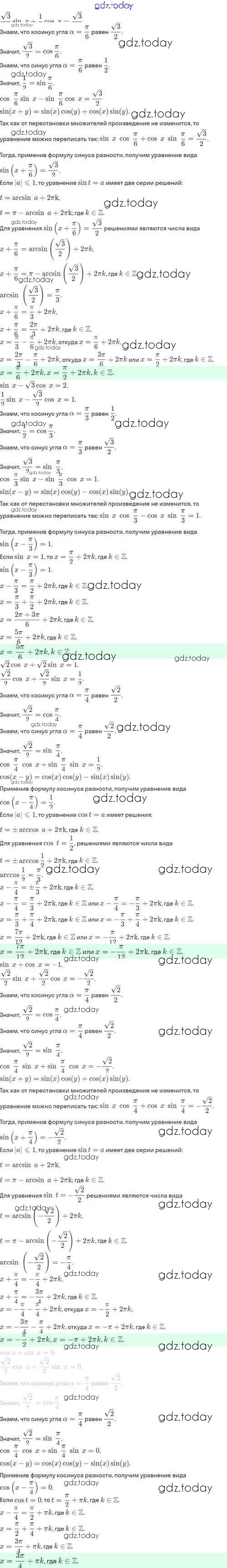 Ответы к §11. Тригонометрические уравнения и неравенства Решение. Глава 2. Тригонометрические формулы. Тригонометрические функции 11.18 Учебнику по Алгебре для 10 класса Никольский, Потапов Базовый и углубленный уровень Просвещение МГУ - школе 2015