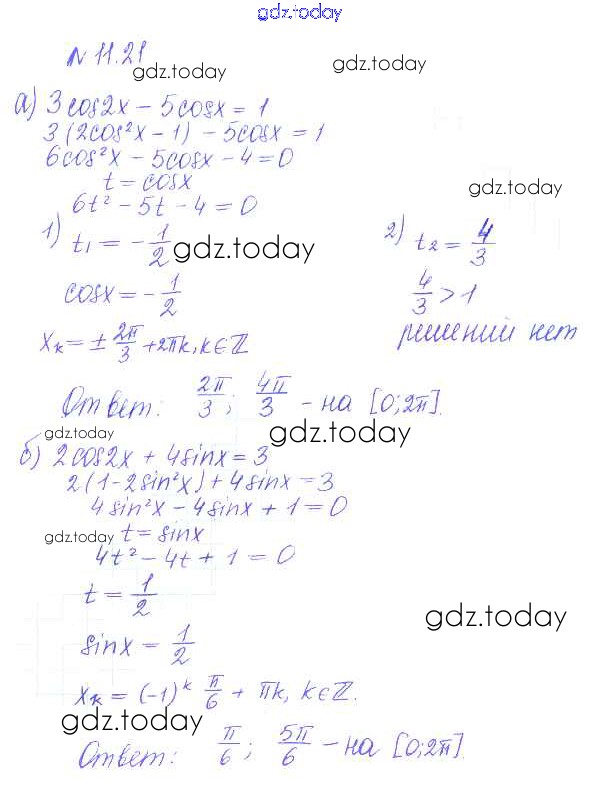 На страницах сайта gdz.today вы найдете учебный и вспомогательный материал, направленный на улучшения знаний школьной программы. ГДЗ - онлайн мир знаний §11. Тригонометрические уравнения и неравенства Решение к главе 2. Тригонометрические формулы. Тригонометрические функции 21 Учебнику по Алгебре для 10 класса Никольский, Потапов Базовый и углубленный уровень Просвещение МГУ - школе 2015