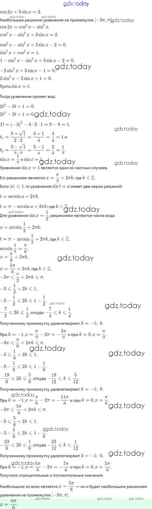 Ответы к §11. Тригонометрические уравнения и неравенства Решение. Глава 2. Тригонометрические формулы. Тригонометрические функции 11.22 Учебнику по Алгебре для 10 класса Никольский, Потапов Базовый и углубленный уровень Просвещение МГУ - школе 2015