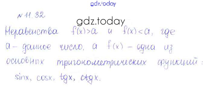На страницах сайта gdz.today вы найдете учебный и вспомогательный материал, направленный на улучшения знаний школьной программы. ГДЗ - онлайн мир знаний §11. Тригонометрические уравнения и неравенства Решение к главе 2. Тригонометрические формулы. Тригонометрические функции 32 Учебнику по Алгебре для 10 класса Никольский, Потапов Базовый и углубленный уровень Просвещение МГУ - школе 2015