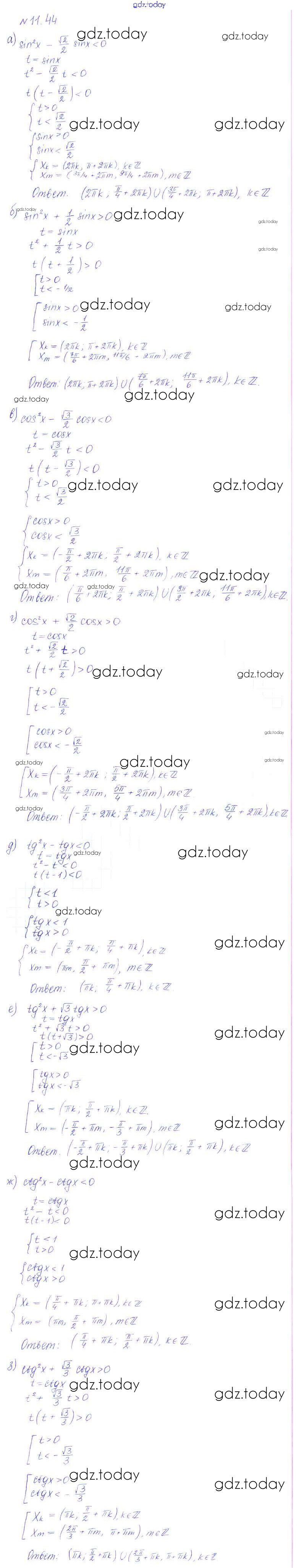 На страницах сайта gdz.today вы найдете учебный и вспомогательный материал, направленный на улучшения знаний школьной программы. ГДЗ - онлайн мир знаний §11. Тригонометрические уравнения и неравенства Решение к главе 2. Тригонометрические формулы. Тригонометрические функции 44 Учебнику по Алгебре для 10 класса Никольский, Потапов Базовый и углубленный уровень Просвещение МГУ - школе 2015